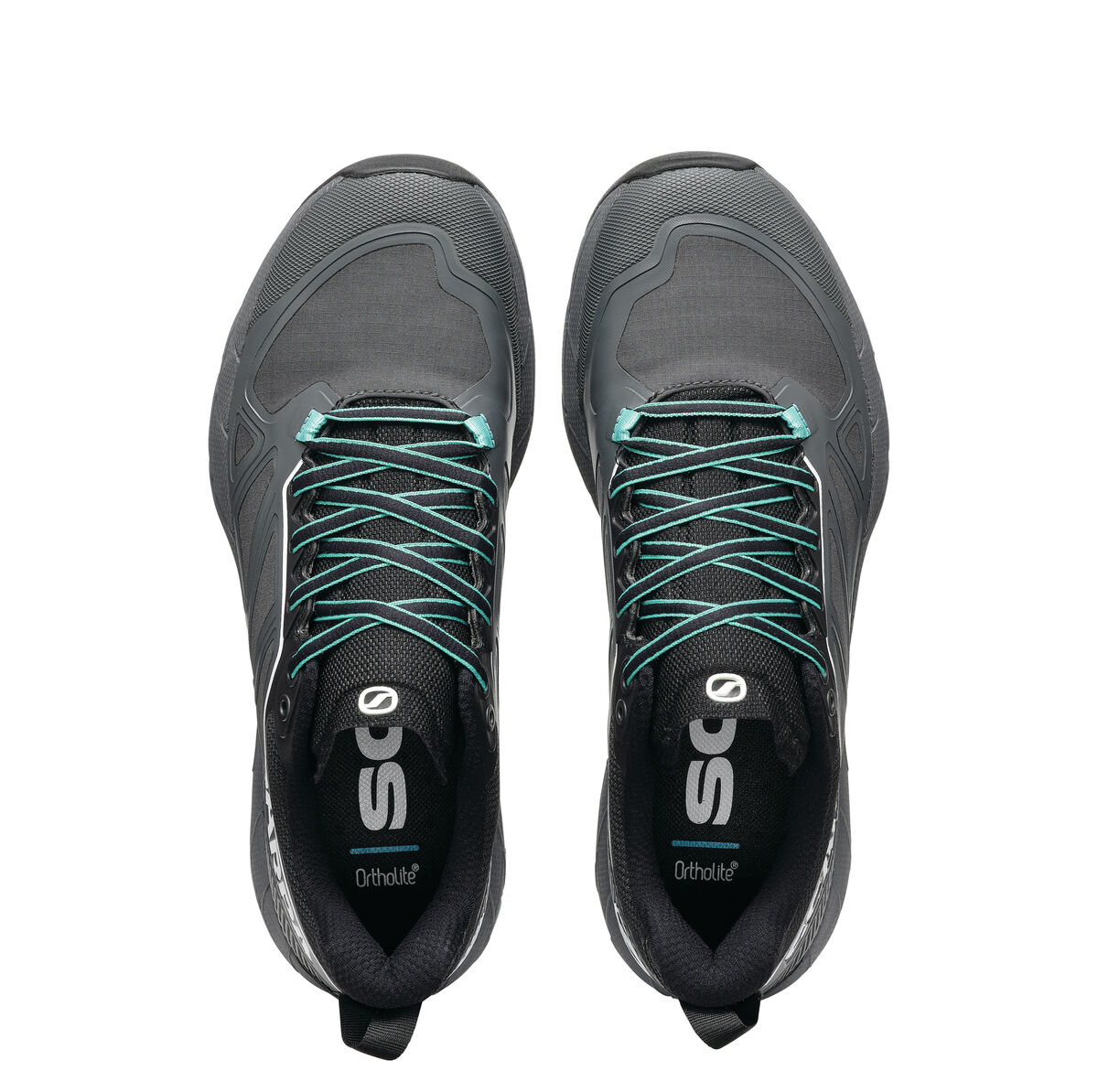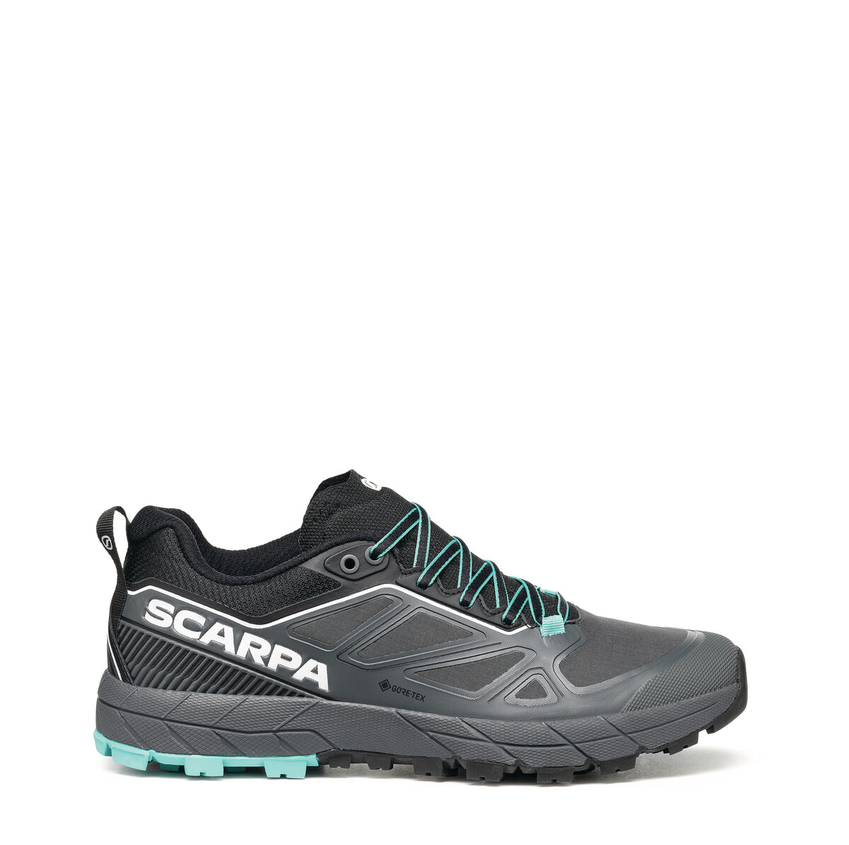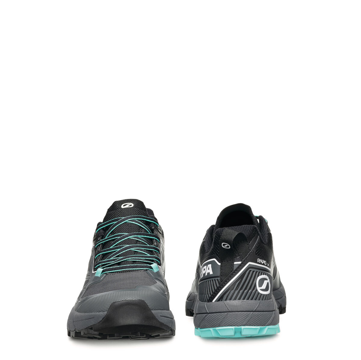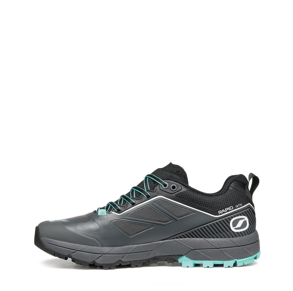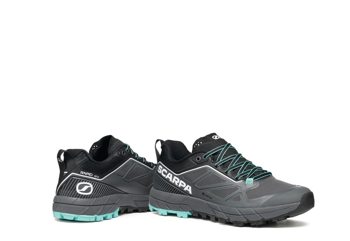 RAPID GTX is the approach shoe designed for moving fast on mountain terrain, even if it rains. Ideal for technical trails, when approaching the climbing wall, easy to attach to the harness and performing well on steep and fast descents.
