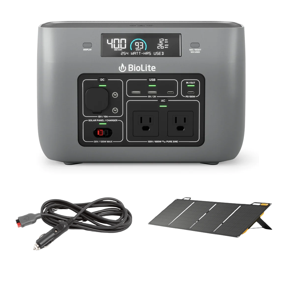Set Biolite BaseCharge 600 + BioLite Solarpanel 100 + BioLite 12V Car Charging 10 FT