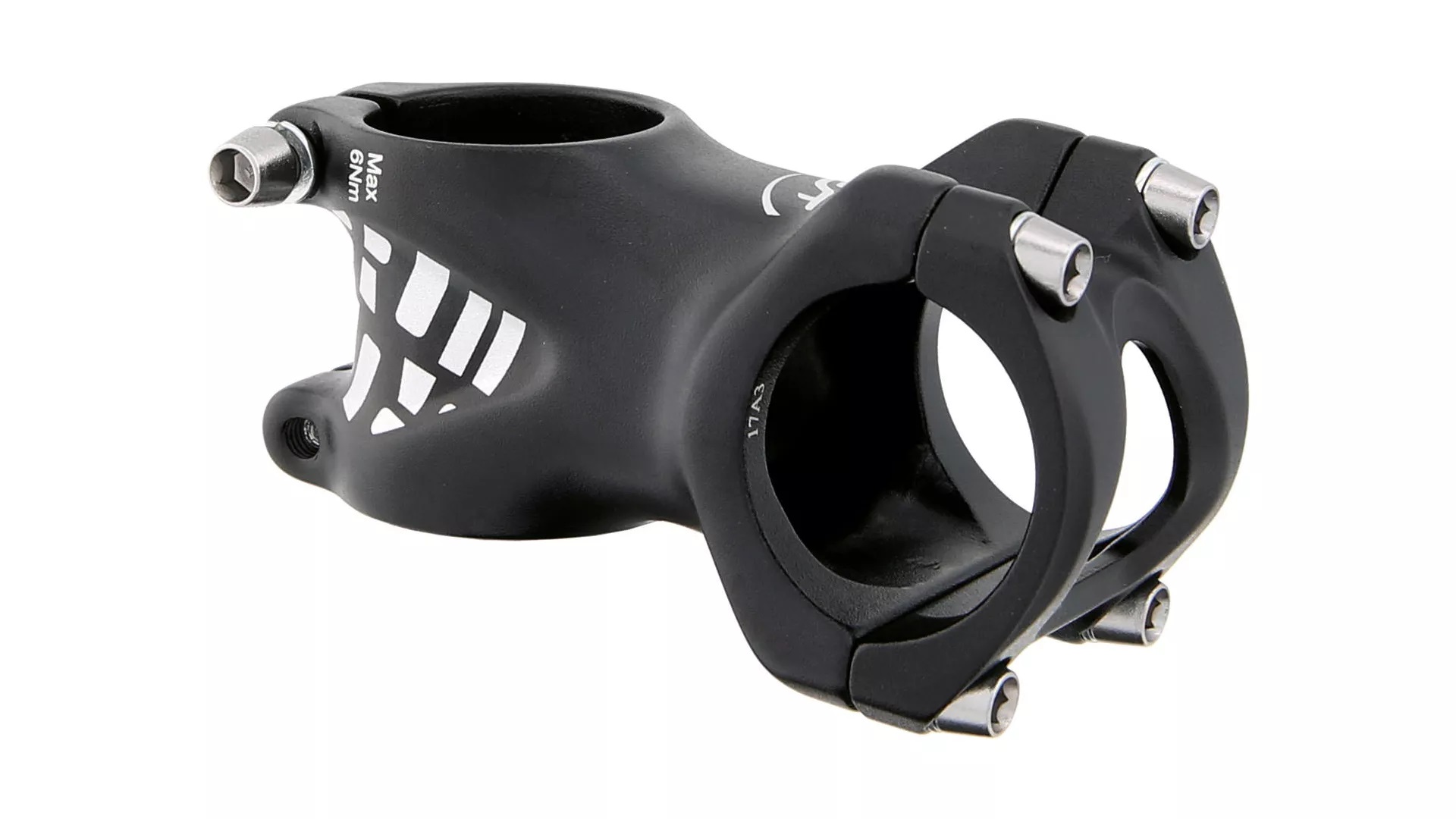 Individuality and simple assembly stand out in this stem. The product is available in 50 or 60 mm lengths as required. The diameter of the handlebar clamp is 31.8 mm and the stack height of the steerer tube clamp is 38 mm. The stainless steel clamp bolts for easy installation are included in the scope of delivery. The bolts, like the entire MTB stem, are as expected rust-free.