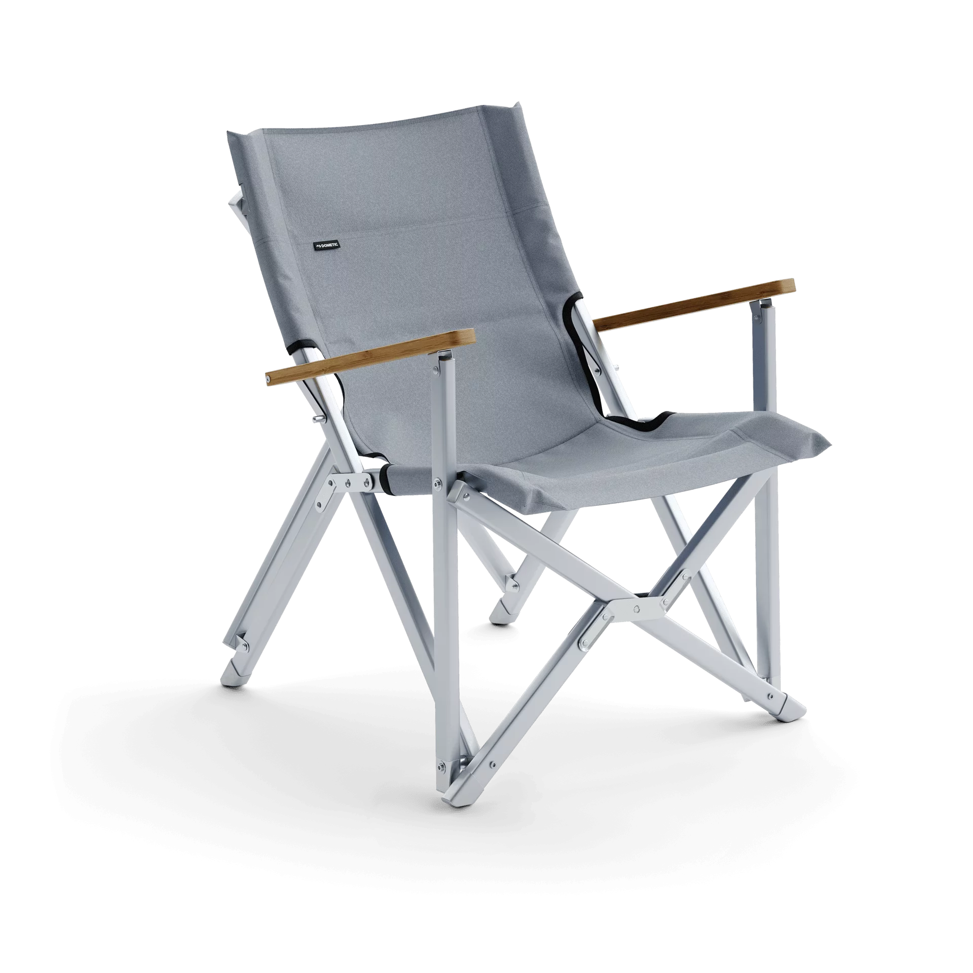 - Made from heavy-duty 600D fabric, lightweight aluminum, and beechwood armrests
