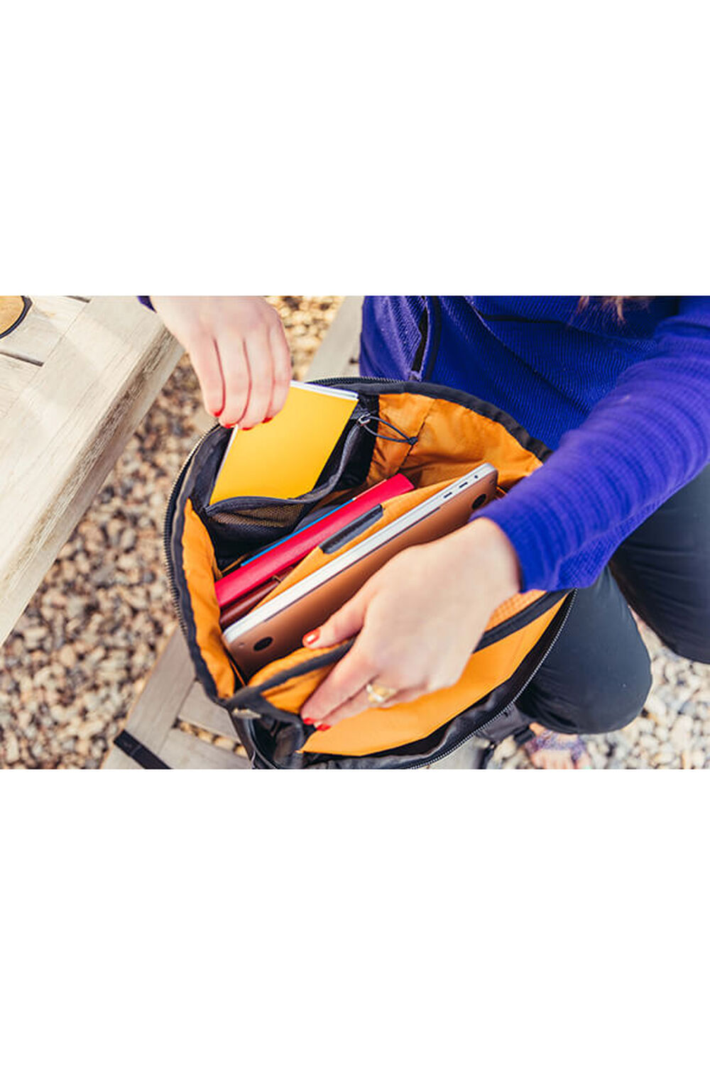 • A top zippered quick-access pocket