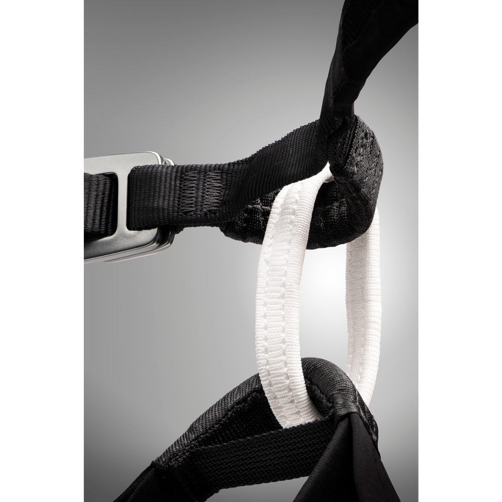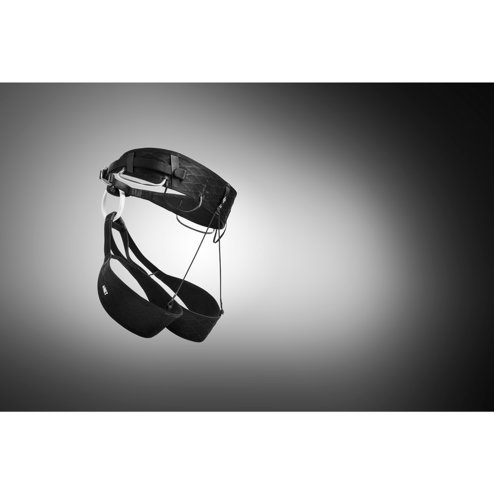 The airNET is a cutting-edge harness that features our patented airNET Technology-an ultra-breathable fabric for high-end performance sport climbing that distributes loads evenly across the "net" during falls. The airNET also includes a patented Infinity Loop for belaying, which is durable, low profile, and eliminates the dreaded belay-loop-shift when dogging a route and the belay loop seam catches. At a svelte 235 grams (men's medium) we've included two pressure molded gear loops in the front while keeping the rear gear loops low-profile webbing to save weight and reduce bulk. Black Dynex lower and upper tie-in points are durable and light, and the seamless, taped edges of the waistbelt and leg-loops proved next-to-skin comfort during intense redpoints.