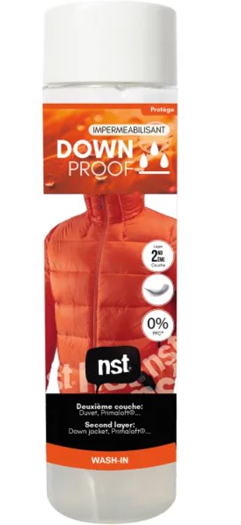 NST Down proof impregnates your outdoor down clothing. Extreme conditions require a high performance water repellent product. With Down proof, clothes retain their technical properties and initial visual appearance. It preserves the breathability and DWR treatment (DWR).