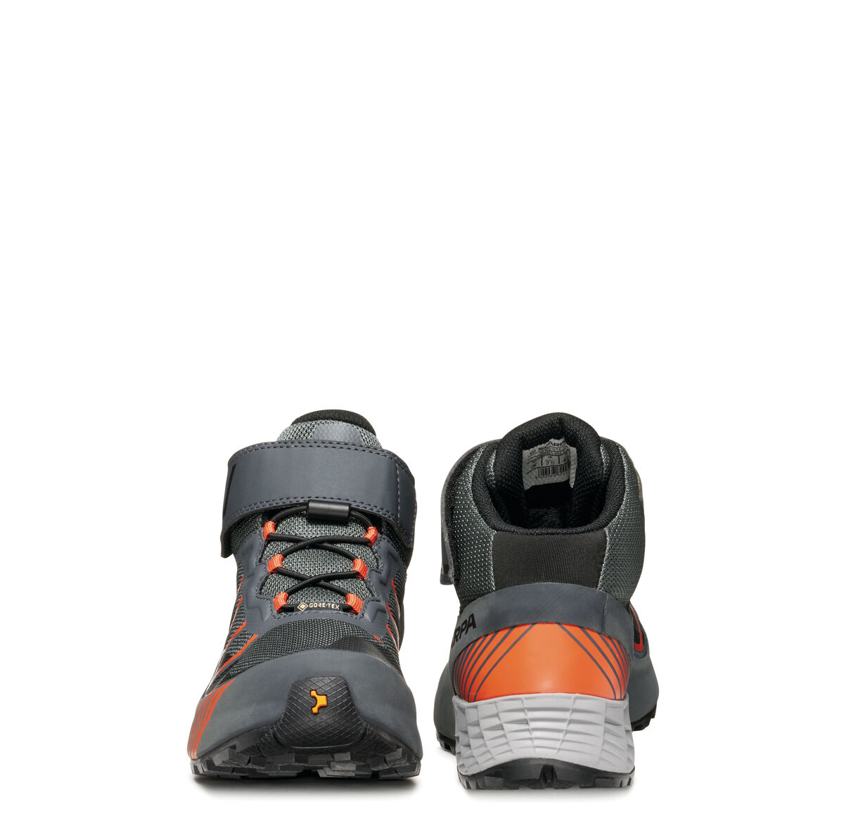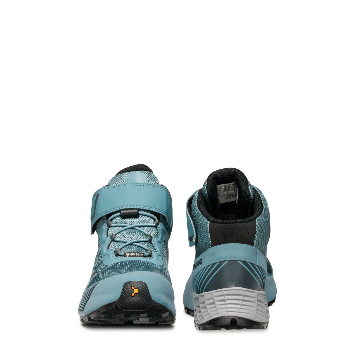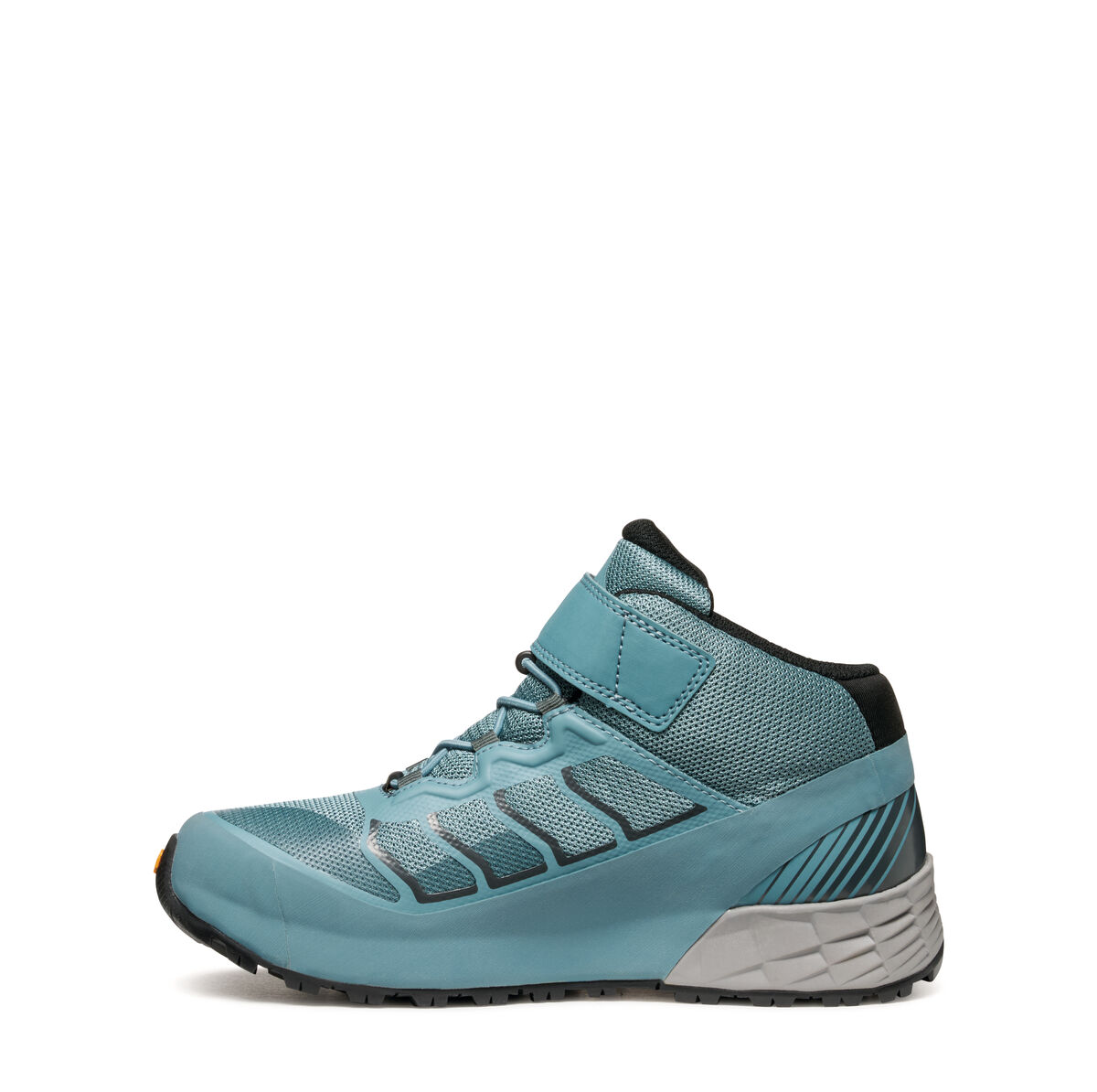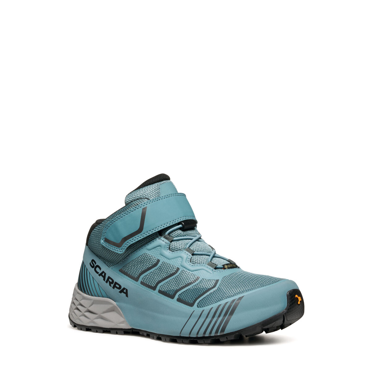 RR MID GTX - Y, inspired by the world of trail running, is the mid-footwear designed for kids' outdoor adventures in cold and rainy weather. The matt-effect colours, the elastic lace and Velcro fastening system are a guarantee of comfort and represent the distinctive features of this model suitable for everyday use.