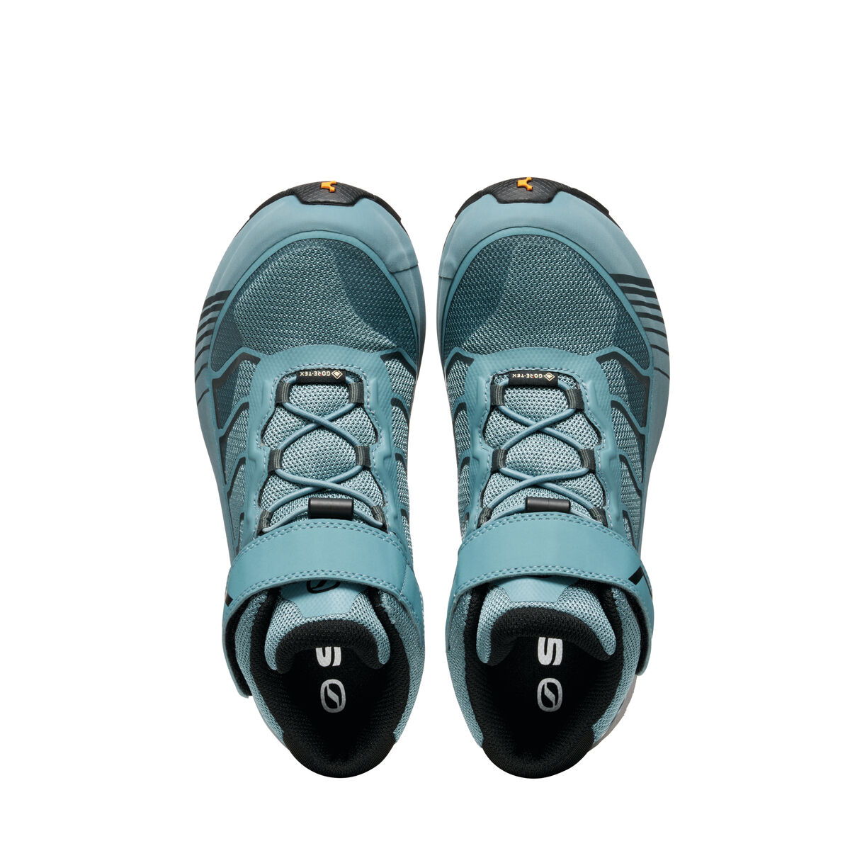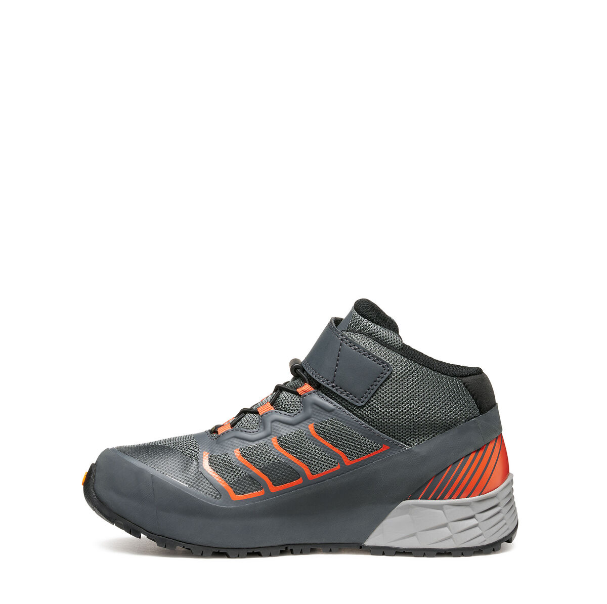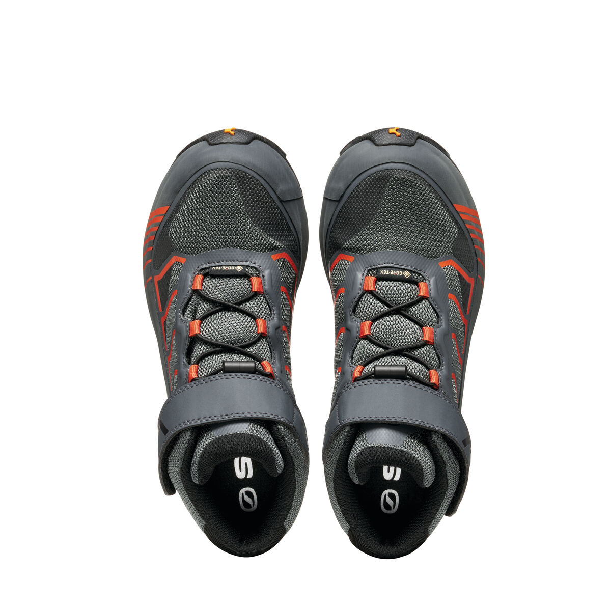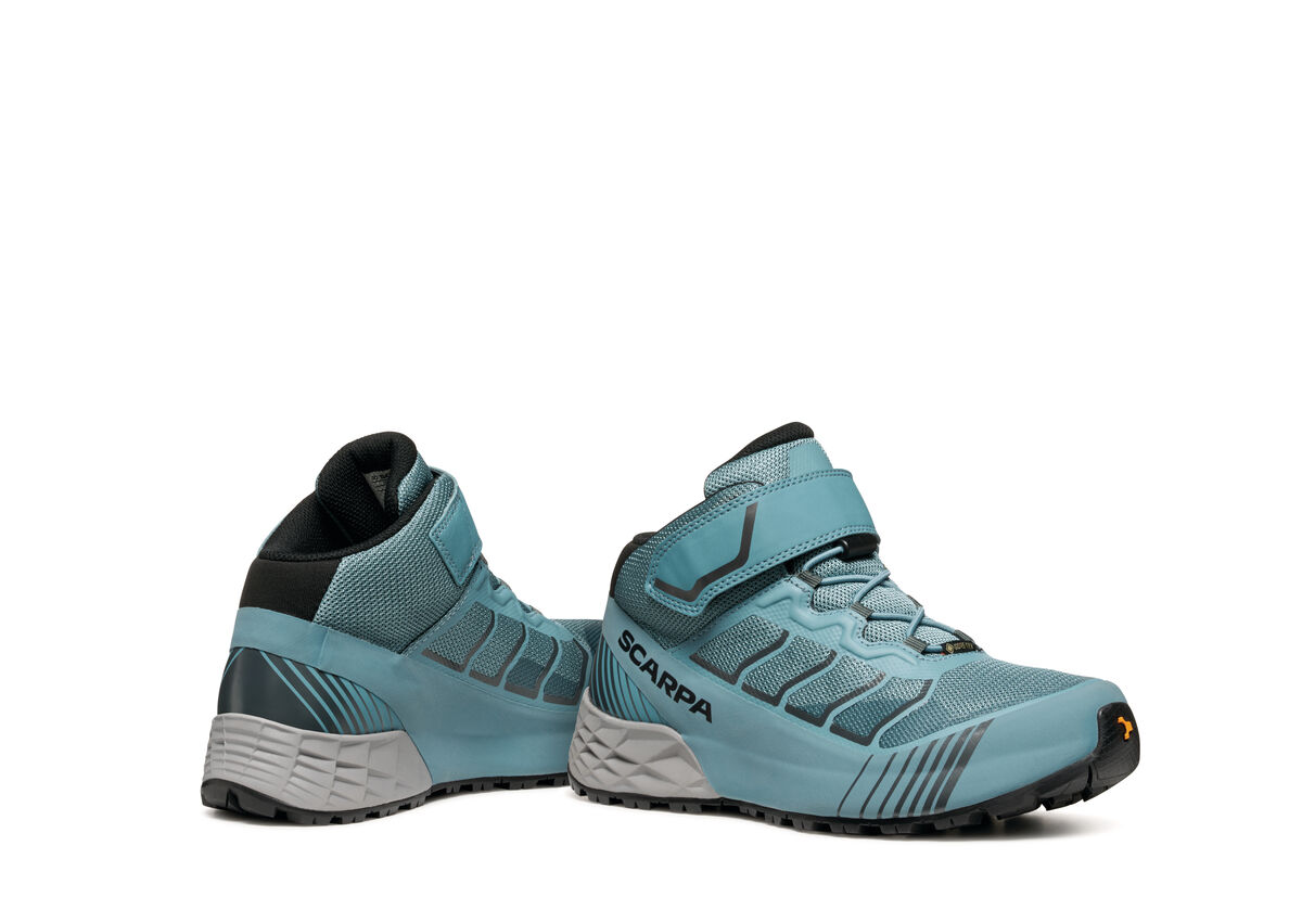 RR MID GTX - Y, inspired by the world of trail running, is the mid-footwear designed for kids' outdoor adventures in cold and rainy weather. The matt-effect colours, the elastic lace and Velcro fastening system are a guarantee of comfort and represent the distinctive features of this model suitable for everyday use.