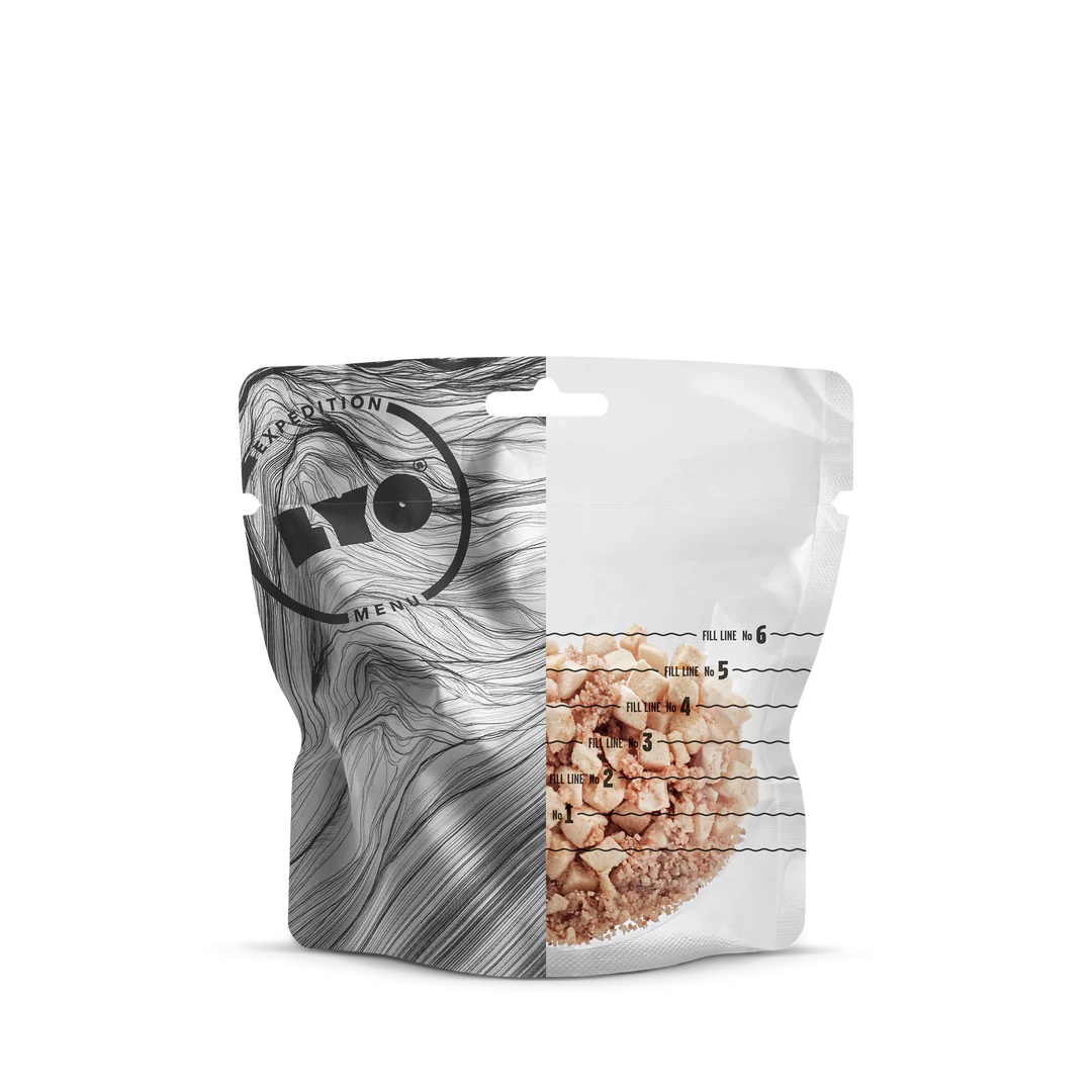 Long shelf life: LYO EXPEDITION meals can be stored for a long time. Since the water content is being removed during the freeze-drying process, microorganisms and enzymes action are inhibited. Each pouch is hermetically sealed and contains an oxygen absorber.