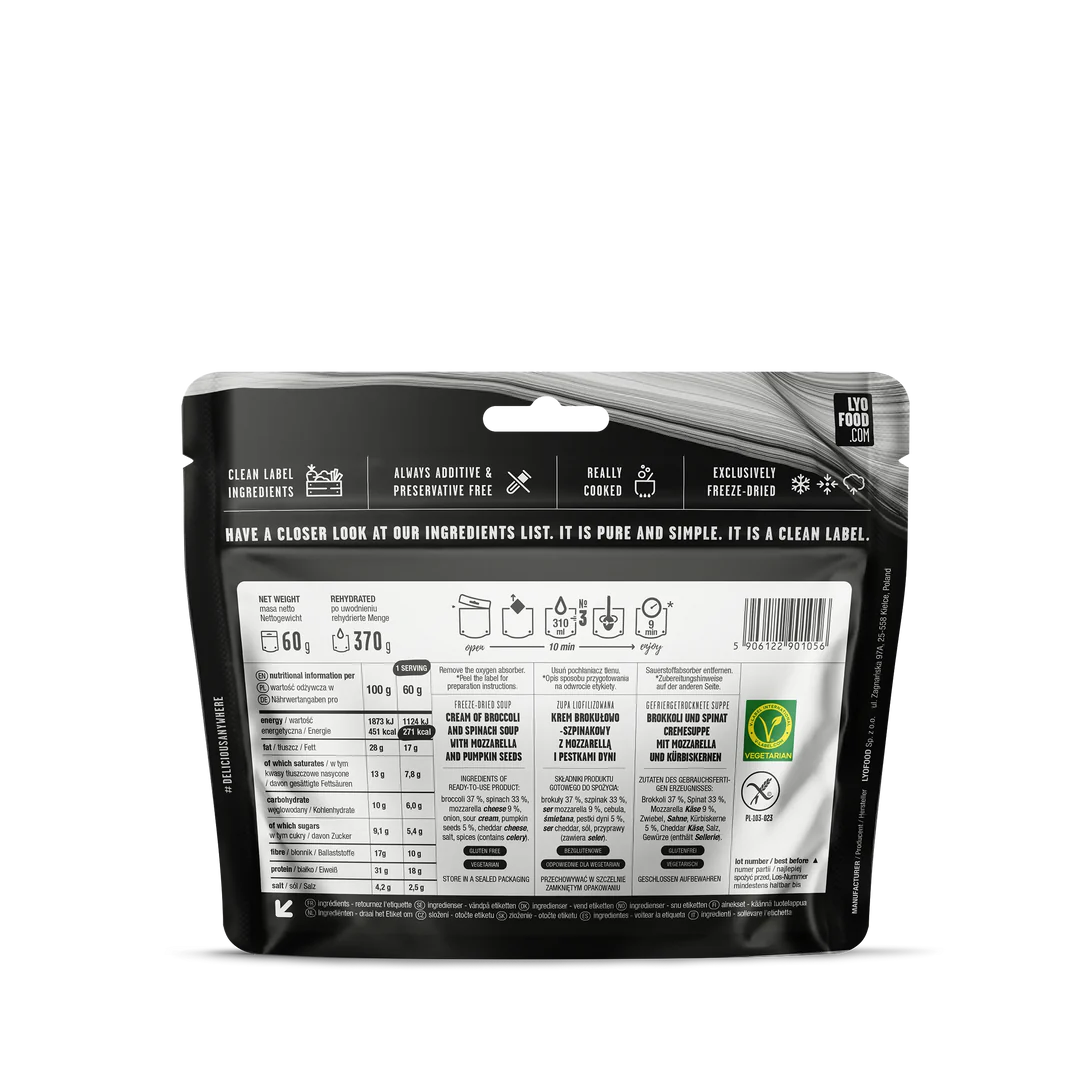Doesn’t matter if you climb, hike, ride a bike or run - you won’t get very far without a nutritious and fueling meal. Gain strength like Popeye and go as far as you want. Broccoli, spinach, mozzarella and pumpkin seeds - we have packed all the good stuff in a small, lightweight LYO zipper bag. It is yummy, satisfying and adventure ready!