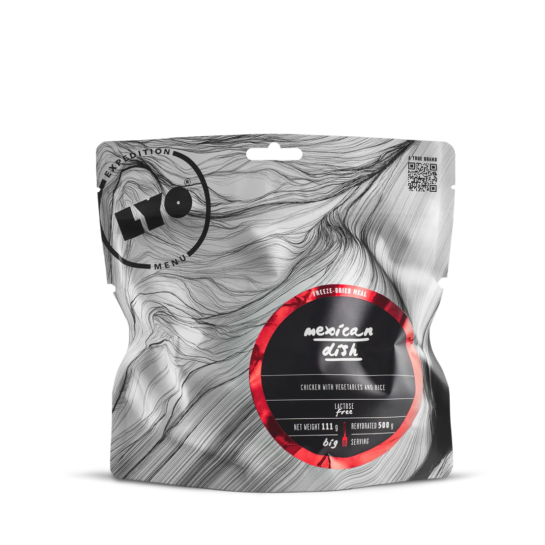 A dish that will turn any outdoor dinner into exciting fiesta for your palate and your soul. If you love vibrant Mexican cuisine as much as we do, our Mexican Dish will quickly become your go-to food for any adventure. Soft chicken pieces and rice in the company of golden sweet corn, sun-drenched red bell pepper and protein-rich beans, all seasoned with classic Mexican spice mix, create a flavorful and colorful meal that is impossible to eat without at least whispering "¡Ay, caramba!".