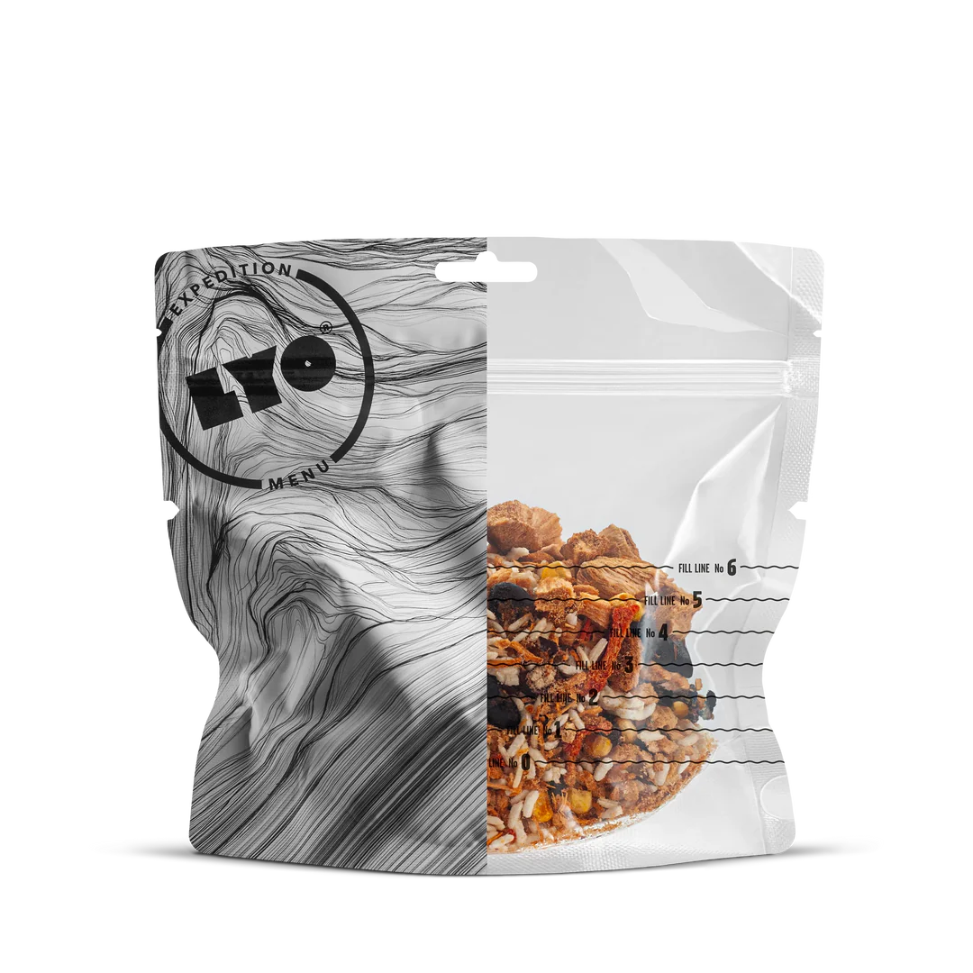 The real taste of a home-made dish: We pay attention not only to the freeze-drying process but also to the way of preparing our meals. We only choose high quality ingredients and always cook every meal before freeze-drying it. This ensures the real, fresh taste that makes LYO EXPEDITION meals so exceptional. Other providers of freeze-dried meals mix the ingredients after they have been cooked separately. We don’t.