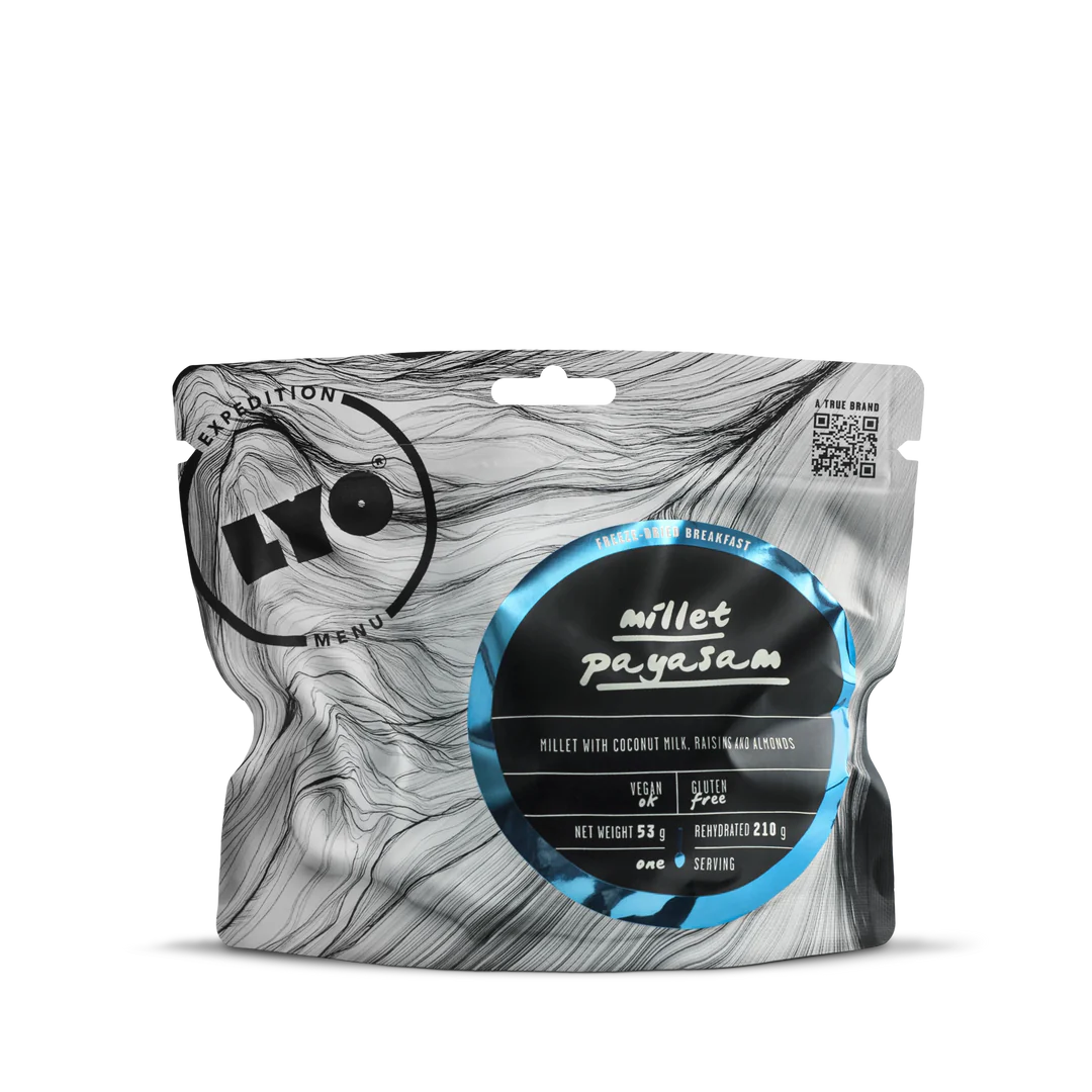 Prepared according to an authentic Indian recipe, Millet Payasam tantalizes the palate with tender grains that melt in your mouth accompanied by succulent raisins and crunchy almonds. The aromatic blend of cardamom and cinnamon goes perfectly with the coconut notes. Infused with a subtle caramel flavor achieved by adding a pinch of jaggery, unrefined sugar made from sugar cane juice using traditional methods.