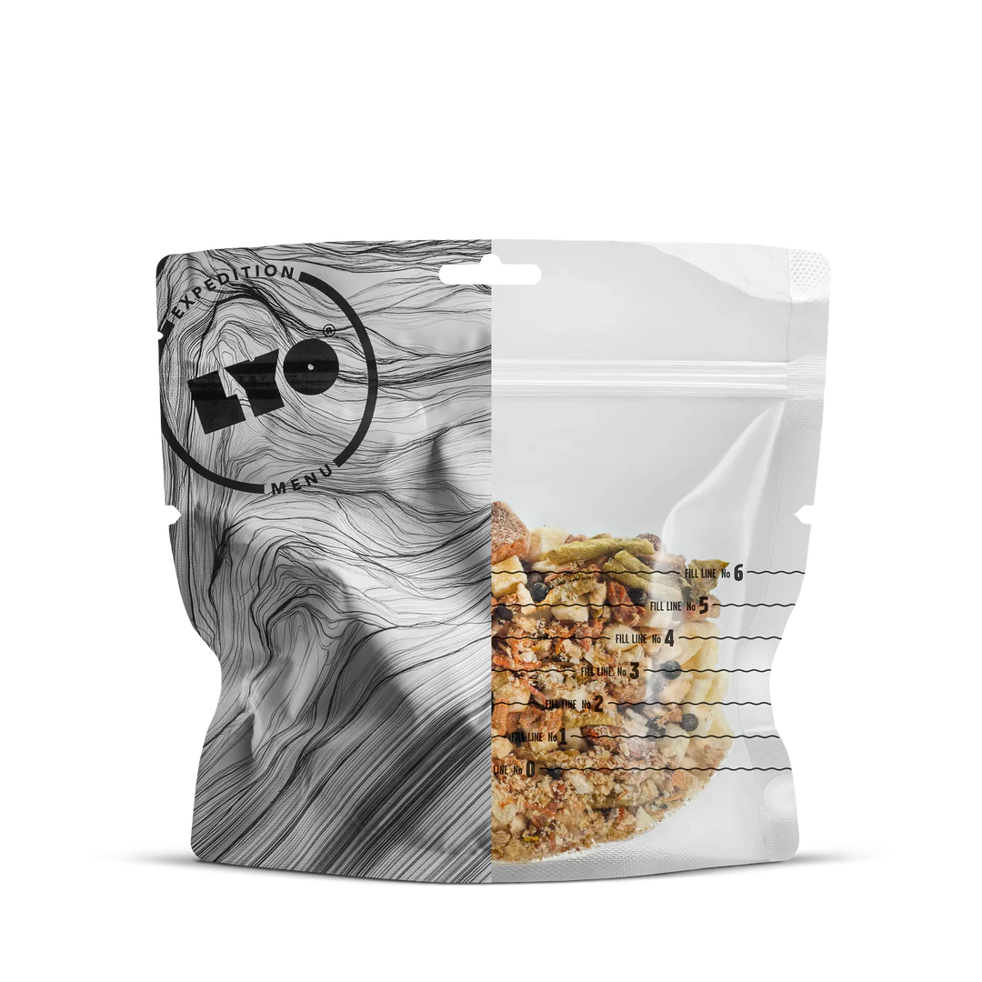 Long shelf life: LYO EXPEDITION meals can be stored for a long time. Since the water content is being removed during the freeze-drying process, microorganisms and enzymes action are inhibited. Each pouch is hermetically sealed and contains an oxygen absorber.