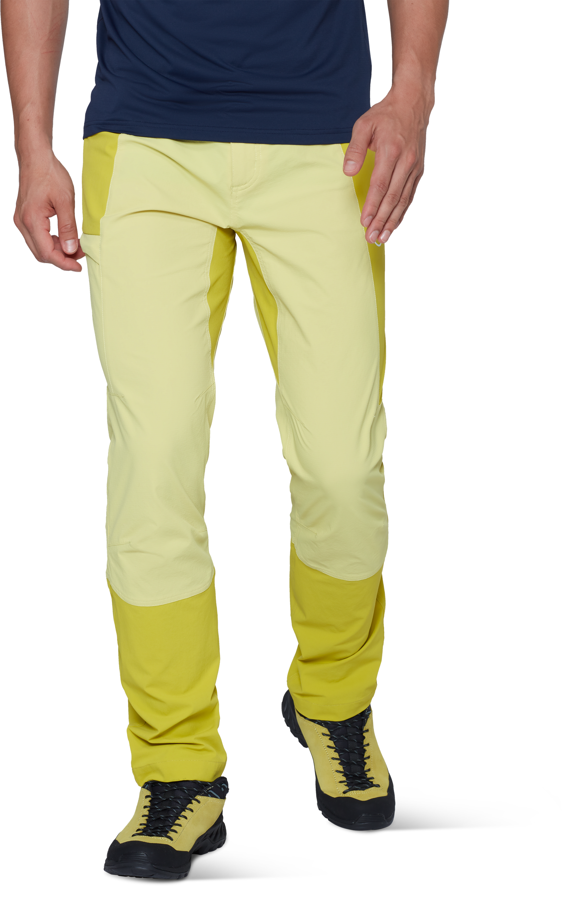 The main fabric is a robust polyamide material with a high spandex content, delivering stretch, comfort, and unrestricted movement. Additional ripstop panels in high-wear zones improve abrasion resistance, making the pants suitable for longer hikes and more varied terrain. The fabric also features a wicking finish that supports active moisture management and helps maintain a drier, more comfortable feel during movement.