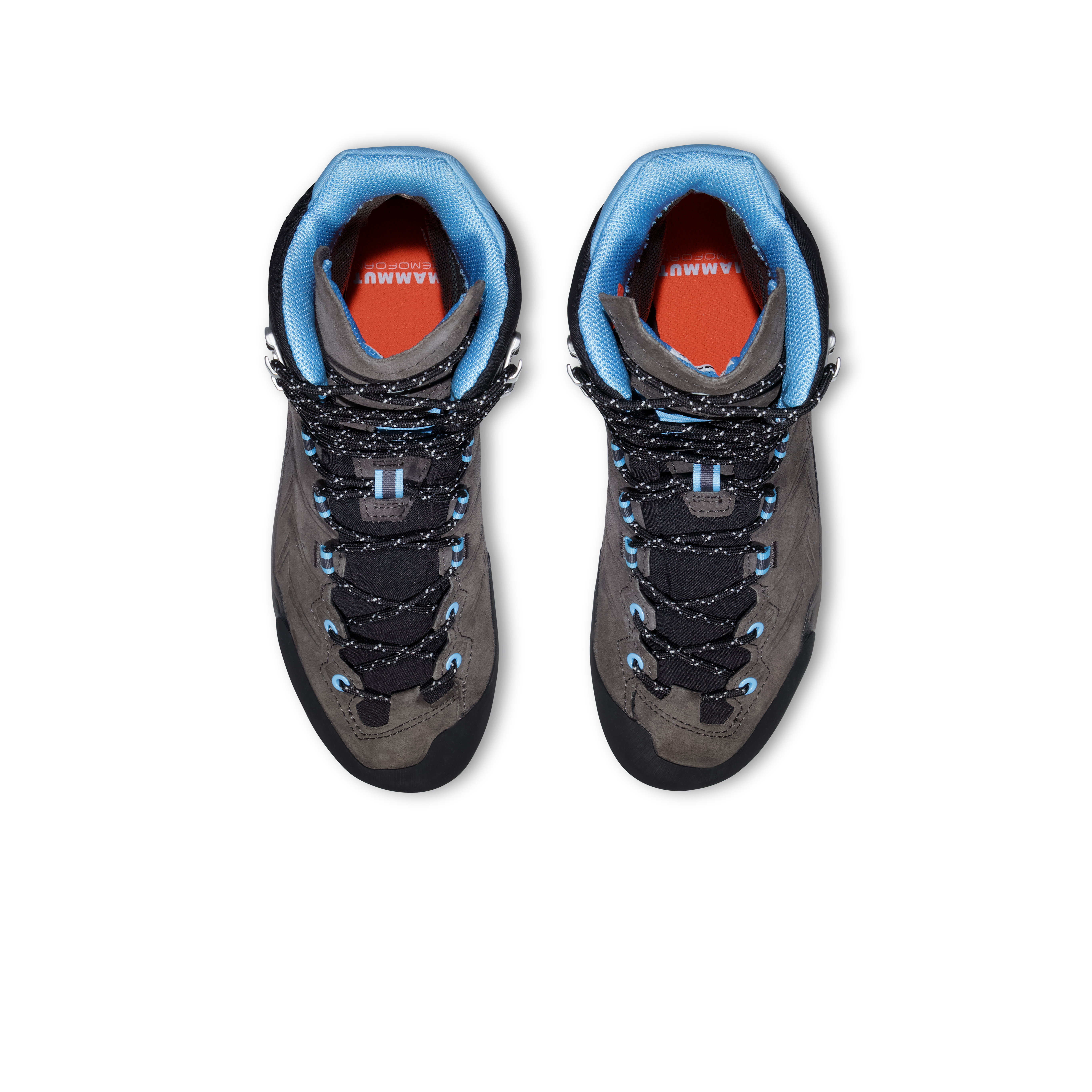 Kento Tour High GTX Women - a lightweight mountaineering boot for classic mountain tours and much more. Sole design developed in partnership by Vibram and Mammut. Less weight. More grip. Sustainably produced "made in Italy" Mastrotto split leather. Waterproof and breathable thanks to a GORE-TEX membrane. Optimized fit thanks to a new last. Mountaineering boot with top technical features for classic mountain tours, via ferrata and much more.