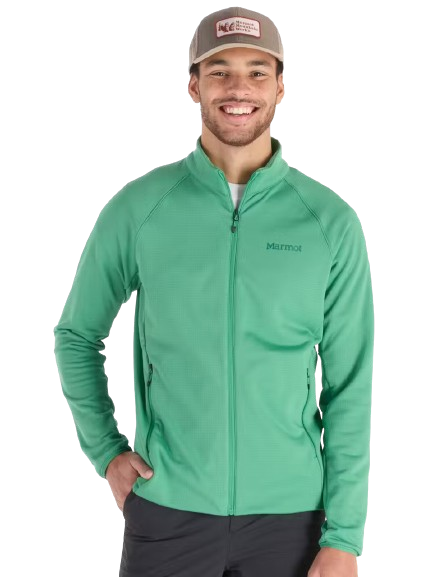The Marmot Leconte Fleece Jacket is a men’s full-zip fleece jacket designed for hiking and active outdoor use. Its lightweight grid fleece fabric offers moisture-wicking performance, breathable comfort, and stretch mobility, while zippered pockets and raglan sleeves complete its practical trail-ready design.