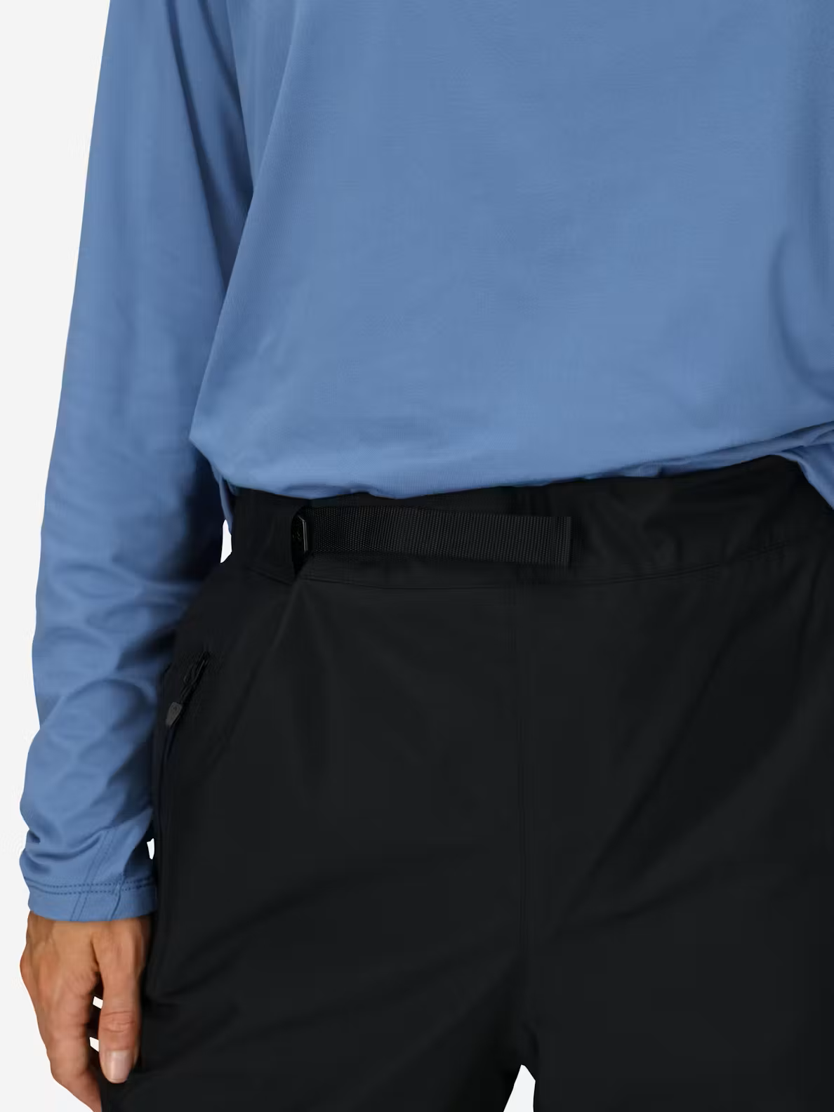 Everything you need, nothing you don't. These ultra-packable trail-ready rain pants are a minimalist backpacker's dream thanks to 2.5L Pertex® Shield Revolve fabric that’s durable, waterproof, windproof, and breathable. Reduced seam construction helps save weight and space in your pack while boosting comfort, mobility, and durability for heavy use in heavy rain. Fully-taped seams and C0 DWR give you leak-proof, water-shedding confidence while 3/4 length side zips make pulling on and off over boots quick, easy, and mud-free. Water-resistant zip hand pockets give you on-the-go storage with articulation in the knees to help you stick to your pace even when you're stuck in a rough storm.