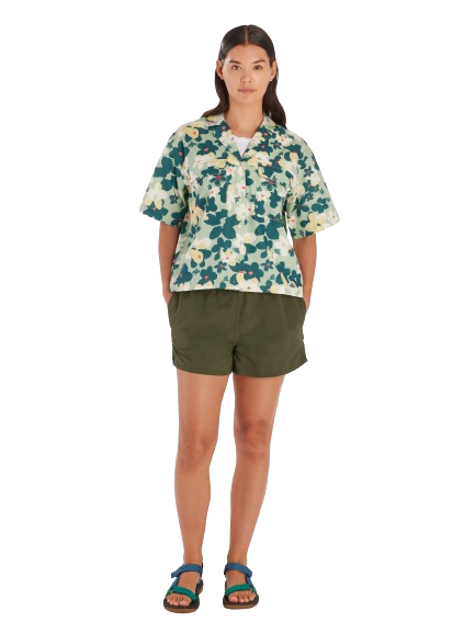When the summer heat is coming in hot, button up with the laid-back vibes of the Muir Camp shirt. Your new go-to collared shirt for summer mountain fun can now make a splash at the pool and cocktail party. Flex your vintage prowess with a timeless, eye-catching camp collar without losing sight of your adventurous side. Updated with a recycled polyester ripstop and cotton blend, this collared short sleeve gives you soft, breathable durability so you're trail and campsite ready for many trips to come. Dress it up for a night on the town or unwind at the lake after a hot summer hike.