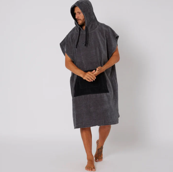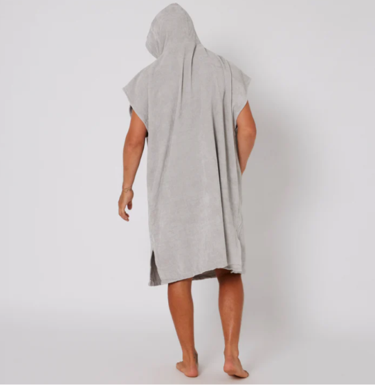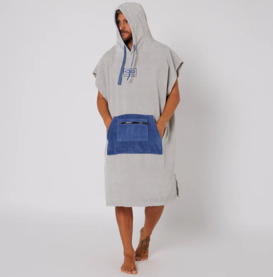 The Mens Daybreak Hooded Poncho Towel is perfect for drying off and changing out of your wetsuit or swimwear. With oversize sleeve openings, zip patch pocket and in 340GSM comfy cotton velour, this is an easy poncho that you can slip in and out of after a day at the beach. 100cm in length.