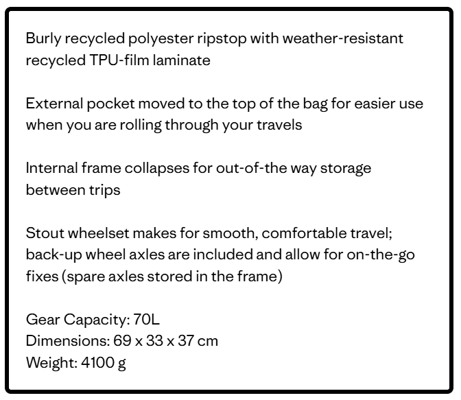 Patagonia Black Hole Wheeled Duffel 70L