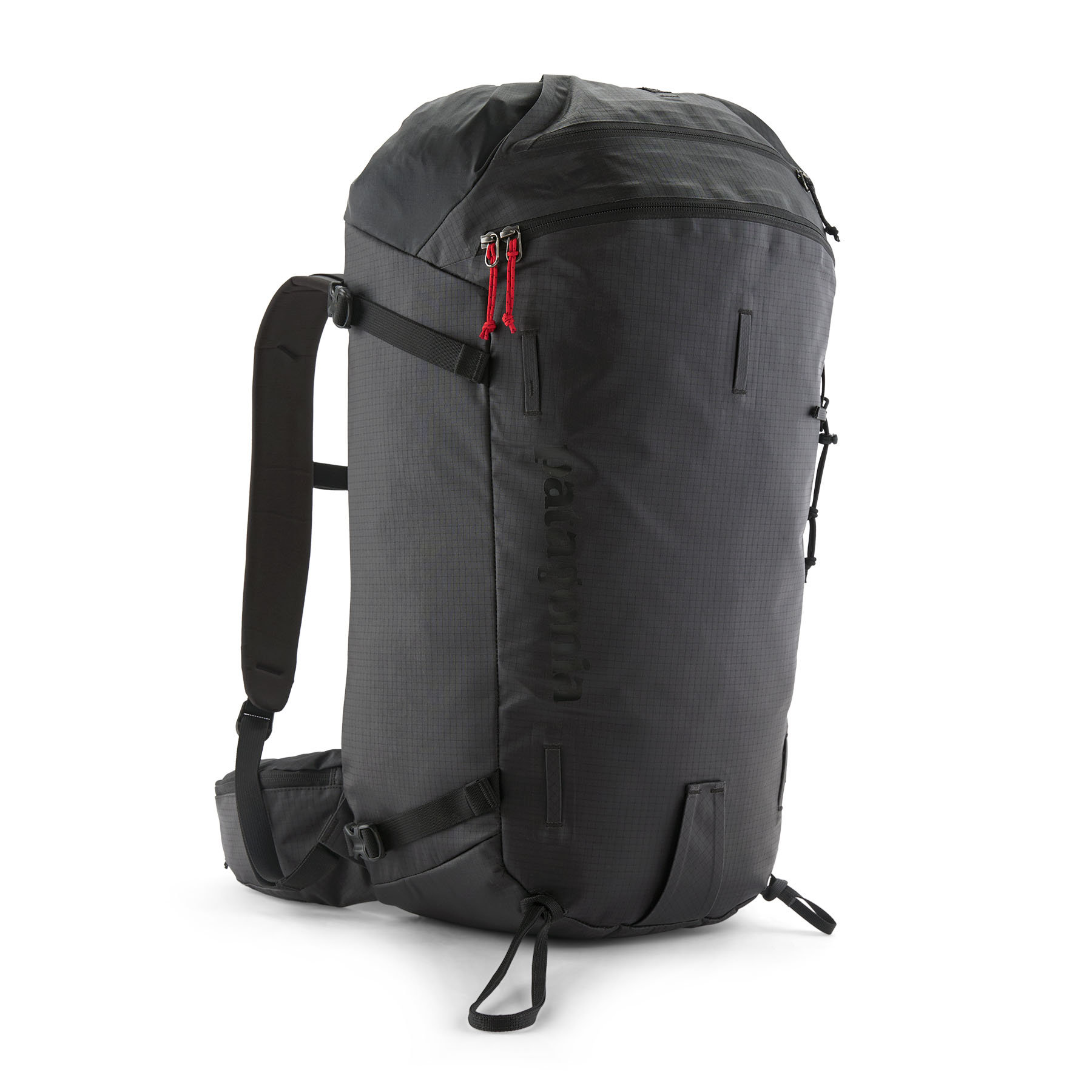 Snow-safety pocket with organization sleeves keeps tools at the ready; an ice axe can be carried on the outside or fits inside the pack.