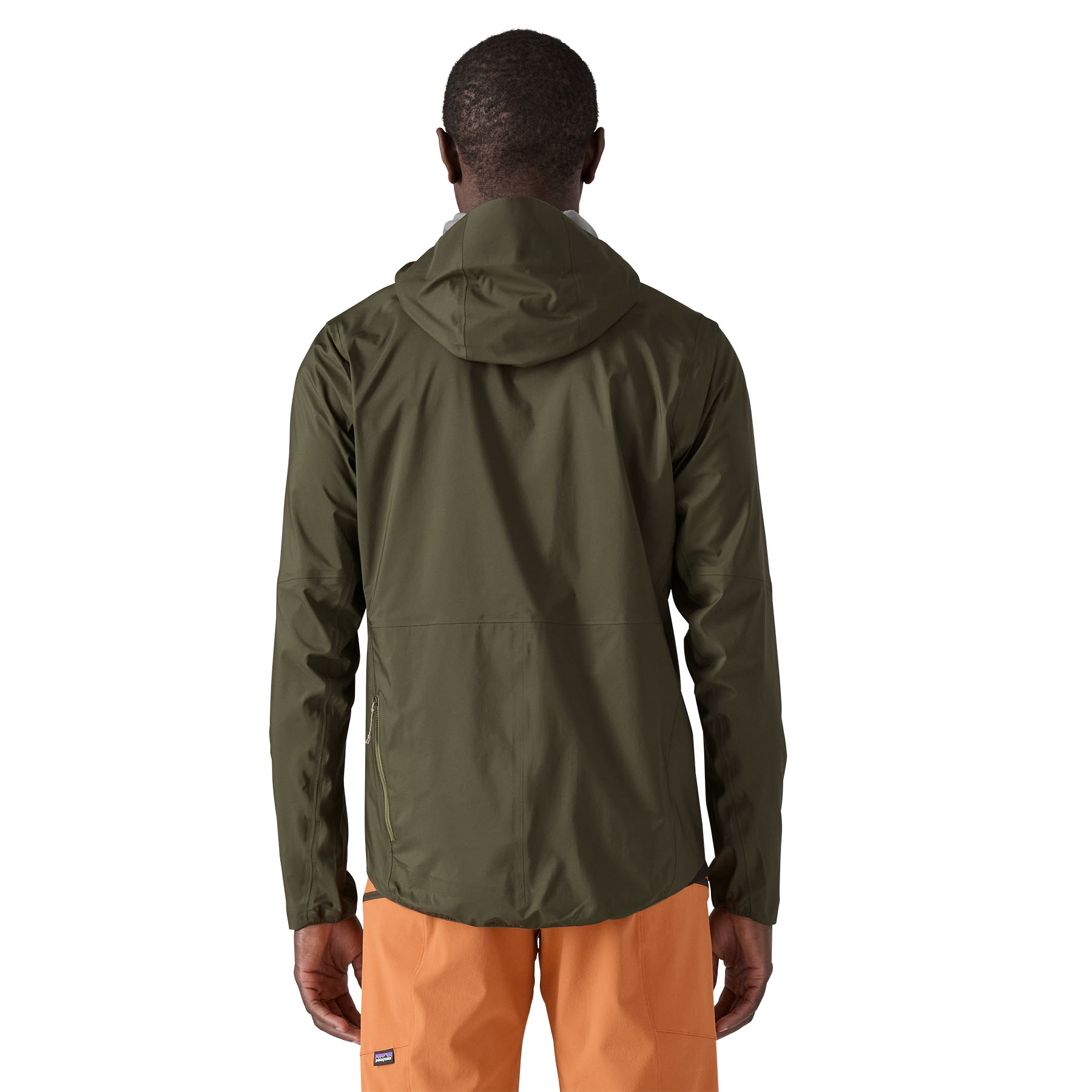 Jacket packs into secure rear pocket, or can be rolled into cinch hood and tied around the waist with jacket arms
