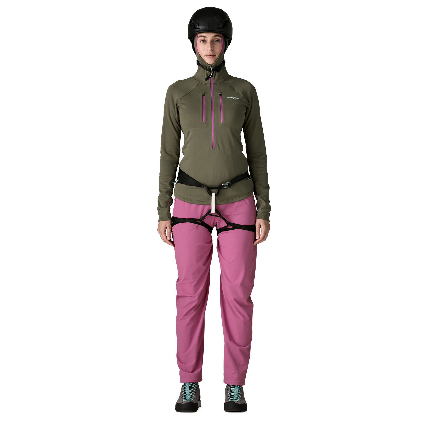 Low-bulk, pull-on waist, with Micro OppoSet® adjustment to dial in the fit, is harness compatible and comfortable enough to climb in all day