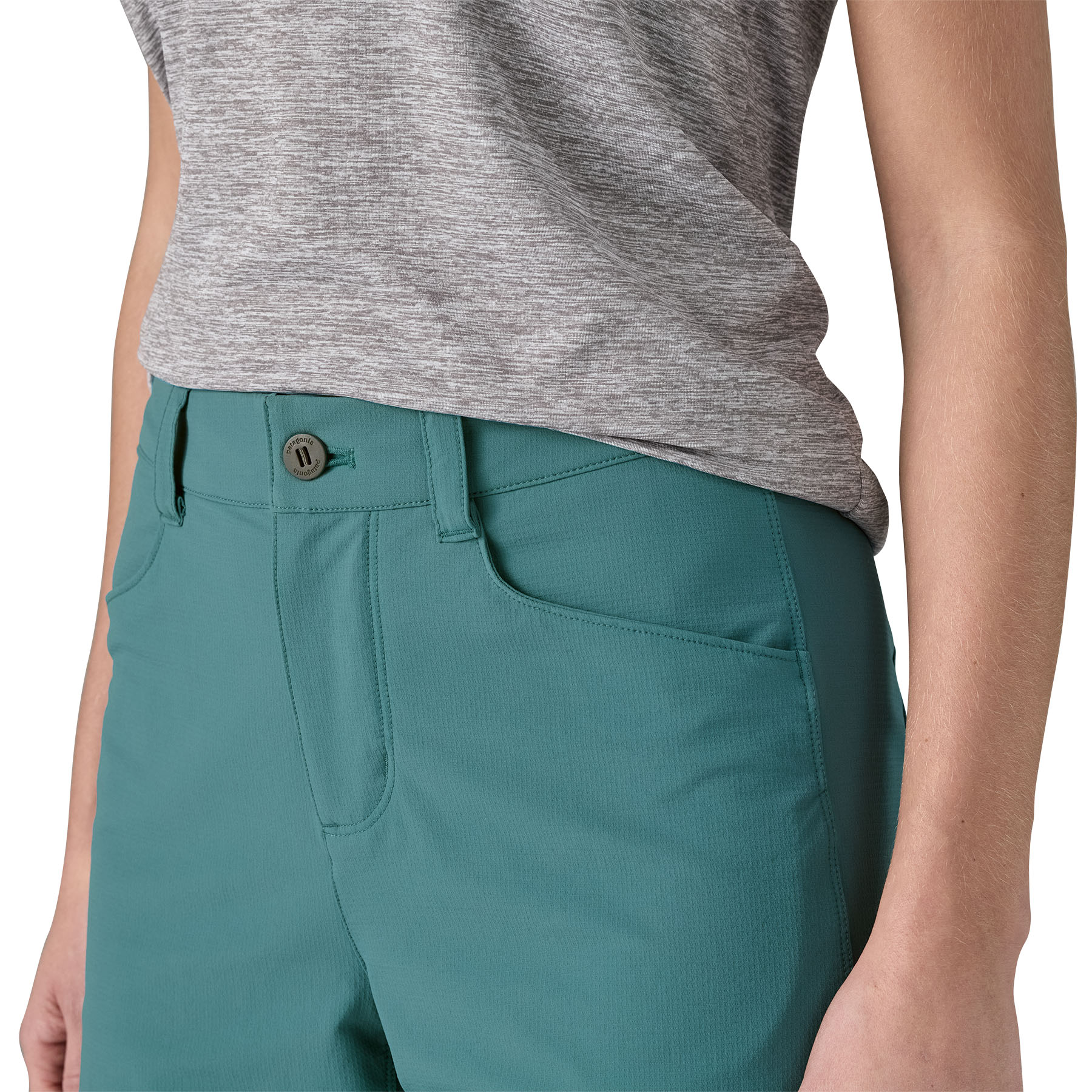 Fabric is built from 92% recycled nylon/8% spandex double weave that's stretchy, breathable and trail-tough; with a durable water repellent (DWR) finish made without intentionally added PFAS to shed light moisture