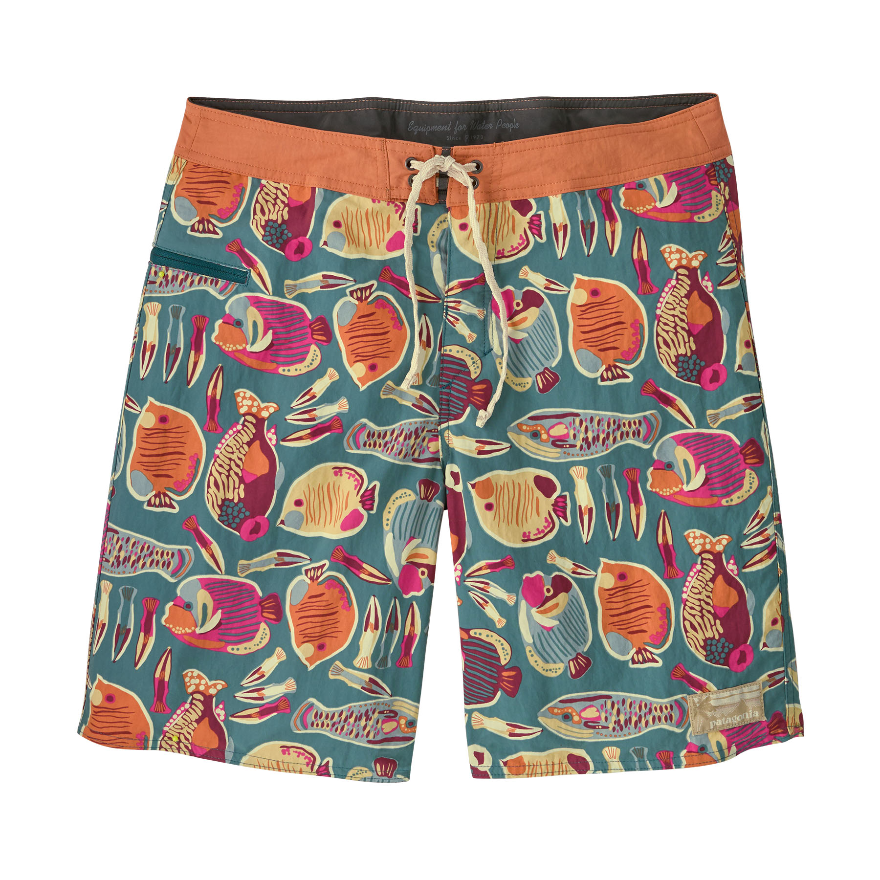 Durable and rugged performance surf trunks, the Wavefarer® Boardshorts are made of quick-drying NetPlus® 100% postconsumer recycled nylon faille made from recycled fishing nets to help reduce ocean plastic pollution, with a durable water repellent (DWR) finish made without perfluorinated chemicals (PFCs/PFAS). The outseam is 19".