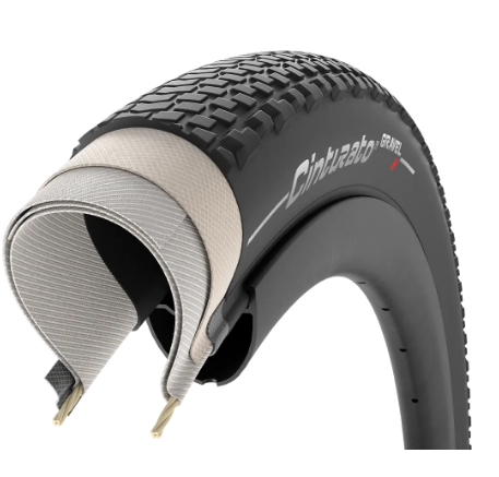 Coupling a reinforced casing construction featuring a woven fabric bead-to-bead layer with a tubeless-ready Aramid bead optimized for wide modern rims, Cinturato™ Gravel Hard Terrain offers an extremely high level of puncture protection and a new level of performance in terms of rolling and grip, as well as great reliability - which is already what the Cinturato™ trademark stands for in Pirelli.