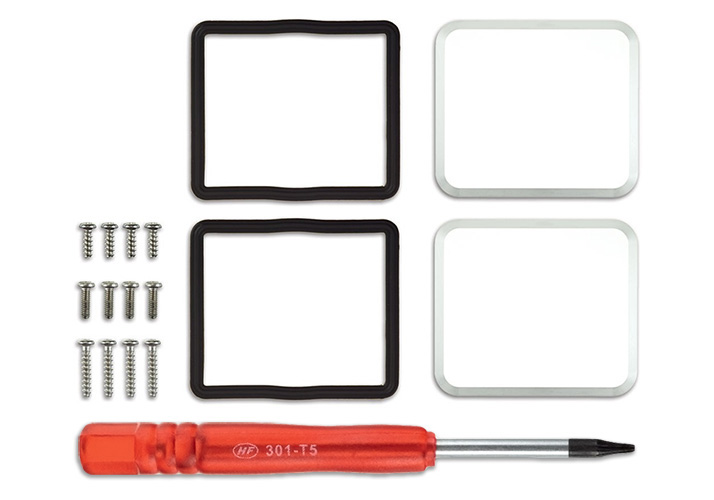 Wymień szklaną soczewkę na obudowie GoPro. Zawiera dwie soczewki i uszczelki, zapasowe śruby i śrubokręt do bezproblemowych napraw.