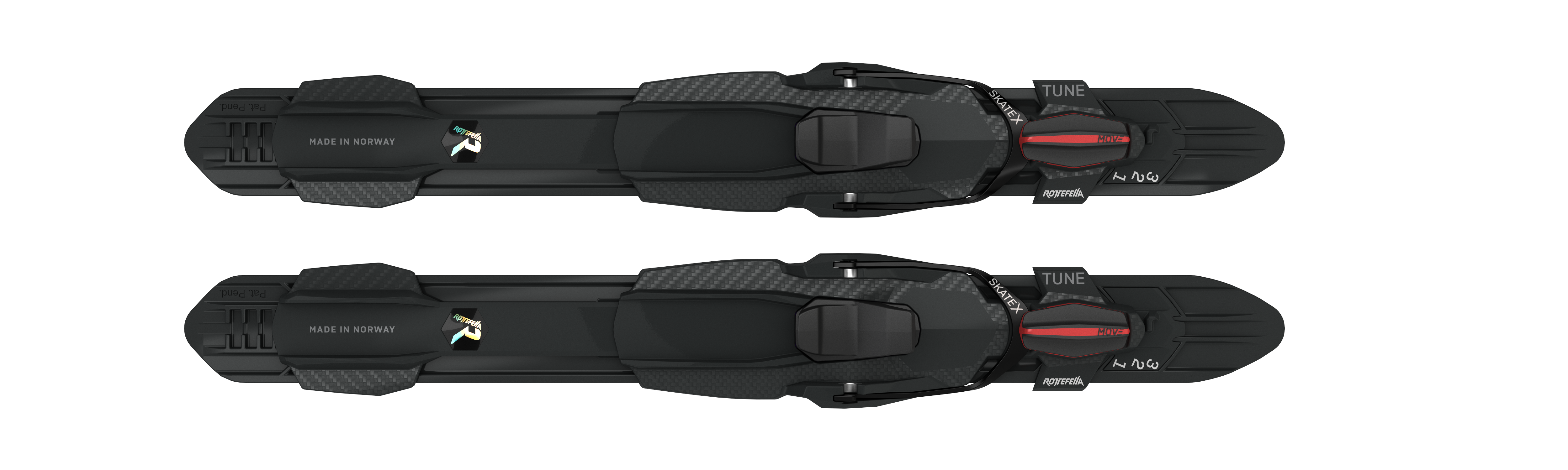 Rottefella SkateX MOVE Pro is a groundbreaking innovation and the first binding developed specifically for skating.  The new connection point is a cleat underneath the ball of the foot, ensuring a stronger connection, better stability and more efficient power transfer. The locking mechanism is nearly twice as wide as the existing NNN system, providing better stability and balance. SkateX comes with MOVE Tune, allowing for fine-tuning of the binding position according to snow conditions, terrain, and technique. The binding is the lightest on the market, also when including the sole and cleat. The binding is approved by FIS and can be used in all competitions. The Rottefella SkateX MOVE Pro is suitable for skating skis from Madshus, Kästle, Peltonen and Skitrab with NIS 1.0 mounting plates. The binding is compatible with Madshus or Alpina ski boots with SkateX sole and cleat.