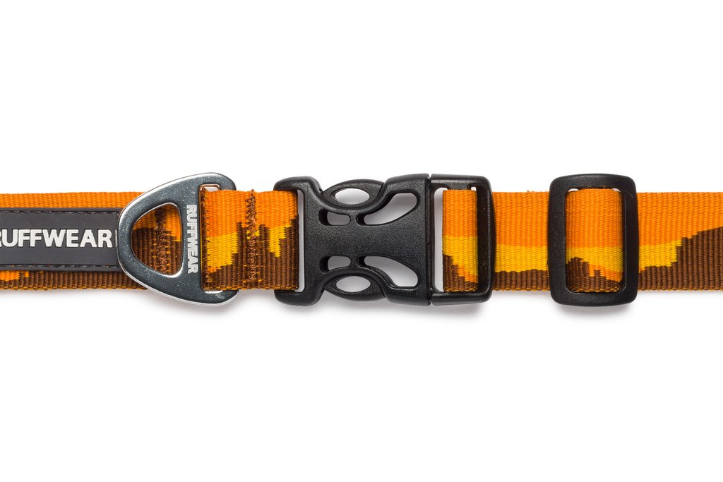 Obroża Ruffwear Hoopie ™ to nasza codzienna obroża dla psa z łatwą w użyciu klamrą z boku. Wzory inspirowane naturą łączą Cię z twoimi ulubionymi dzikimi przestrzeniami. Pełne istotnych cech kołnierza Ruffwear: oddzielny punkt mocowania identyfikatora z tłumikiem tagu, mocna i wygodna taśma oraz aluminiowy V-ring.
