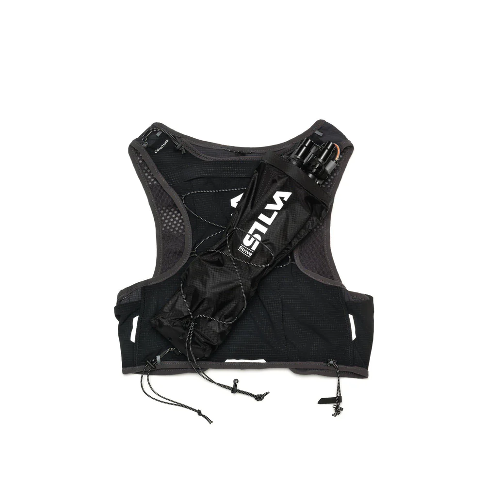 The Strive 10 Vest features reflective details for low-light visibility, an integrated emergency whistle, and straps for running poles. You can attach a headlamp to the chest area, and the vest is compatible with the Silva Quiver mounting system. The materials are soft yet durable – body fabric nylon with elastane, and front body polyester. Hand wash only.