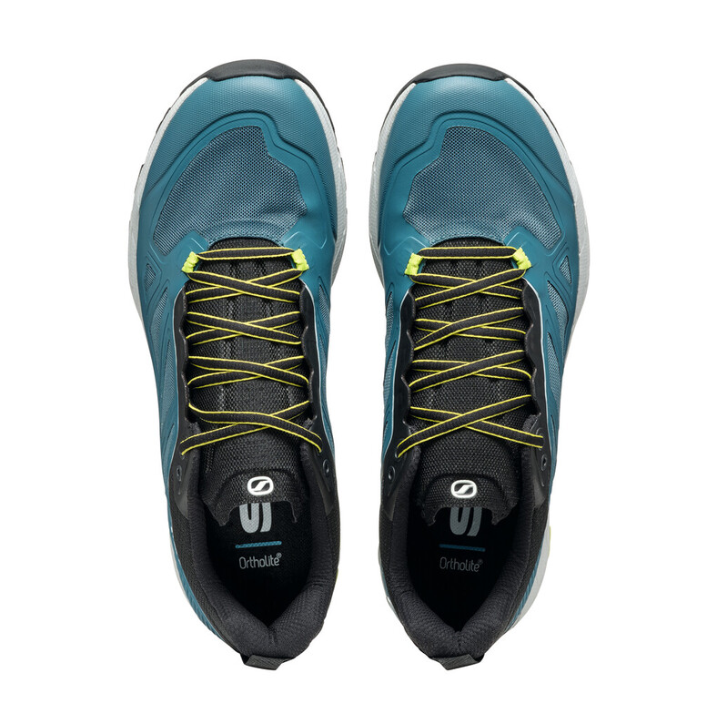 Techniczne pletwo z zewnętrzną klatką TPU i termo-zgrzewanym filmem bocznym dla wsparcia. Siatka chroniąca przed naciskiem i uderzeniami na kołnierzu i języku zapewniająca trwałość i ochronę w wrażliwych miejscach. Dopasowanie jest precyzyjne i owinięte dzięki wewnętrznemu systemowi konstrukcji Sock-Fit LW by SCARPA, który unika punktów kompresji, obejmując stopę i zapewniając większą stabilność boczną.