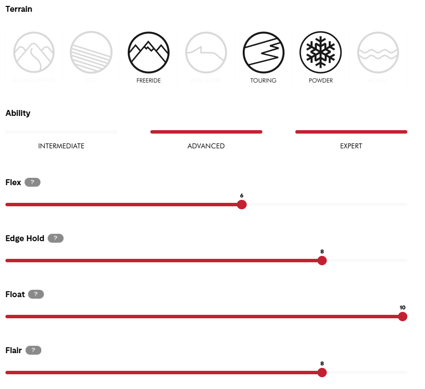 Używamy rozszerzonego podniesienia, odwrotnego kształtu camber w czubku i ogonie, co w połączeniu z szerokością talii jest najważniejszym elementem zapewniającym pływalność w świeżym śniegu. Rozszerzone podniesienie ułatwia również obracanie i inicjację zakrętów, zmniejszając ryzyko złapania krawędzi.