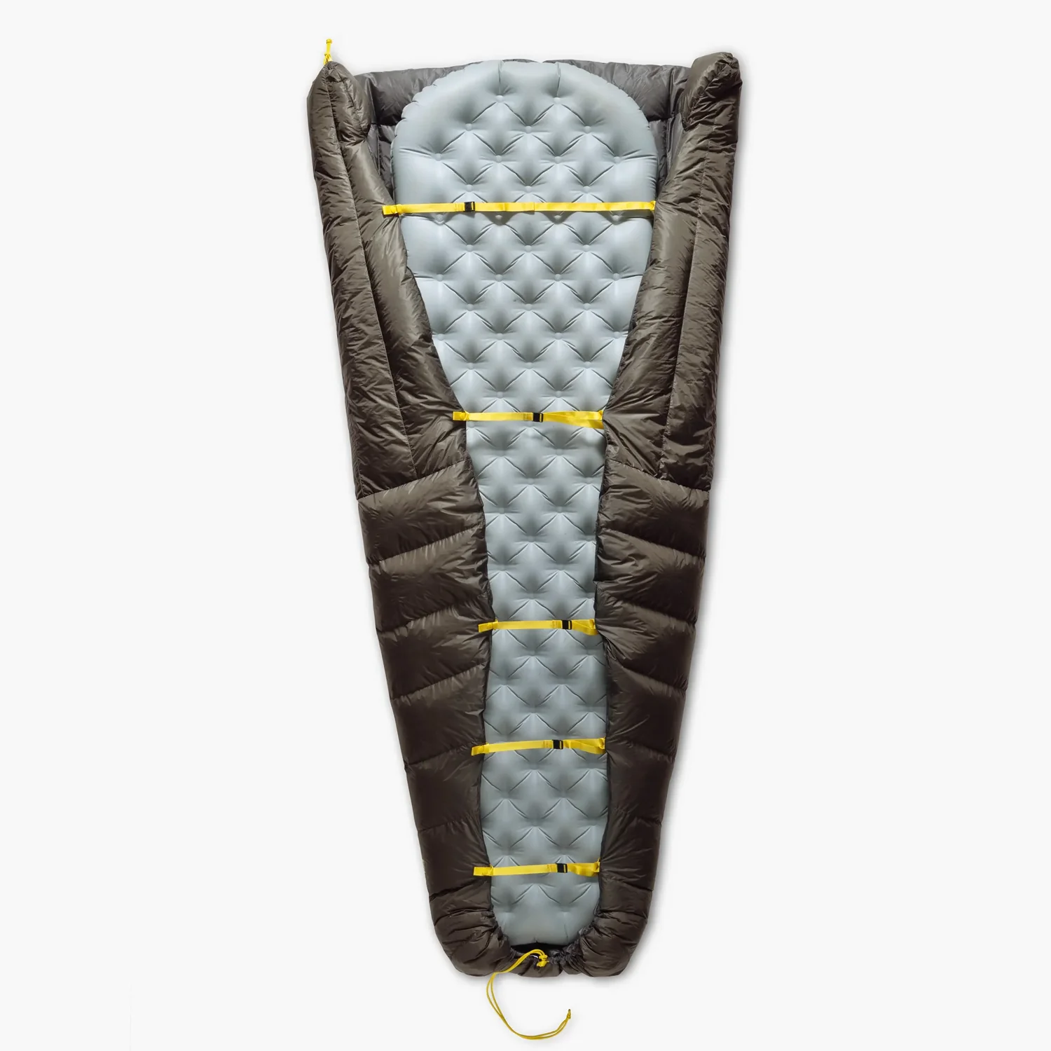 An Ember quilt can be an ideal light and packable option for bikepackers, ultralight hikers and travellers. Constructed using high quality 850+ loft Ultra-Dry Down and featherweight fabrics, this well-constructed quilt offers freedom from the weight of a sleeping bag zip and the freedom from the constrictive shape that comes with some sleeping bags.