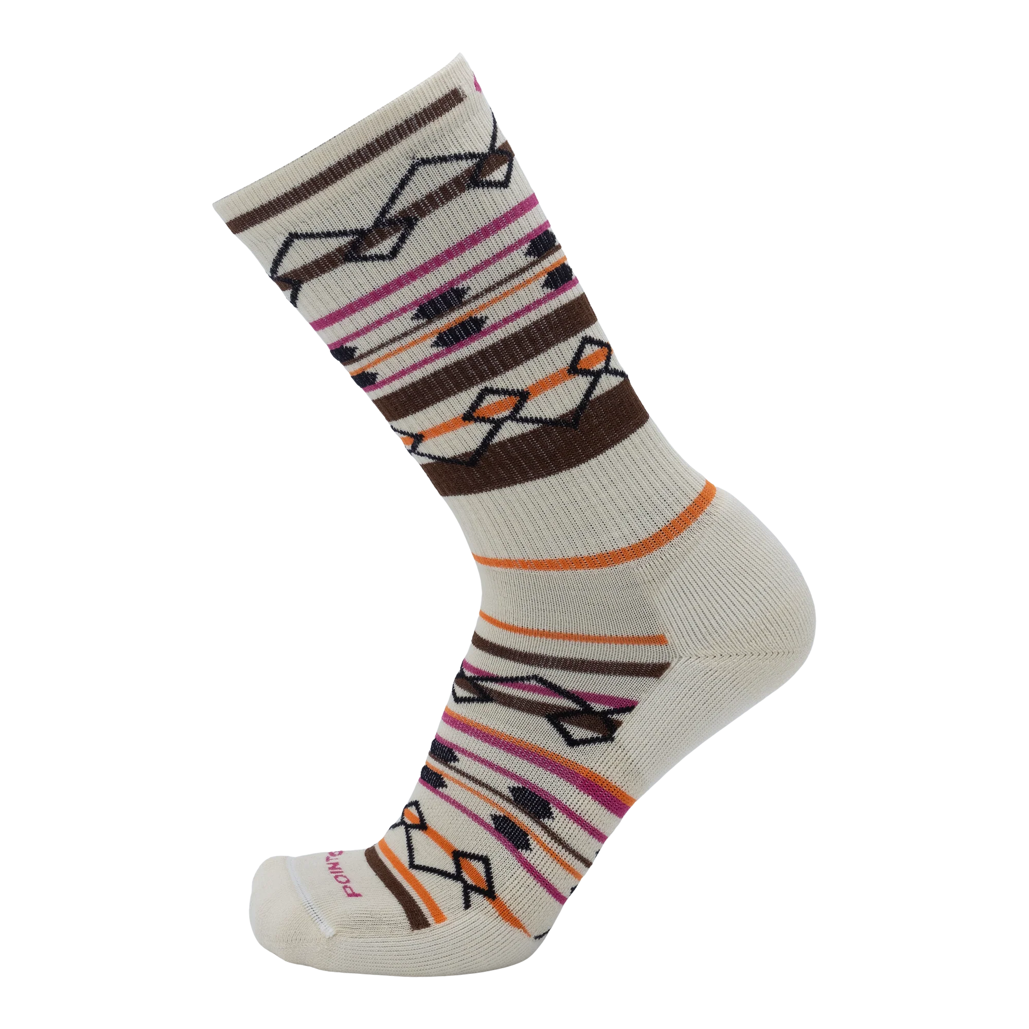The Mesa Light Crew blends a bold Southwestern design with lightweight performance. Look good and feel even better with light cushioning underfoot for a barely-there feel, while keeping your feet dry and blister-free on any adventure. Soft merino wool naturally wicks moisture, regulates temperature, and ensures all-day comfort. Available in cream and classic blue, the Mesa Light Crew is the perfect companion for both the trail and everyday wear.