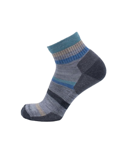 Maximize evaporation and accelerate dry time for unmatched comfort and performance with these hiking socks from Point6. For those seeking light cushioning under the foot and exciting color patterns, the mixed stripe light quarter (2 1/2" cuff) crew is an excellent choice. Best with low-cut hiking shoes and designed to meet the demands of any outdoor activities.
