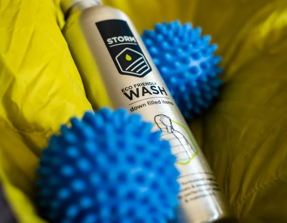 Storm Down Wash is a specially formulated detergent for washing down-filled clothing and gear. It cleans effectively while preserving the natural oils in the feathers to maintain insulation and loft.