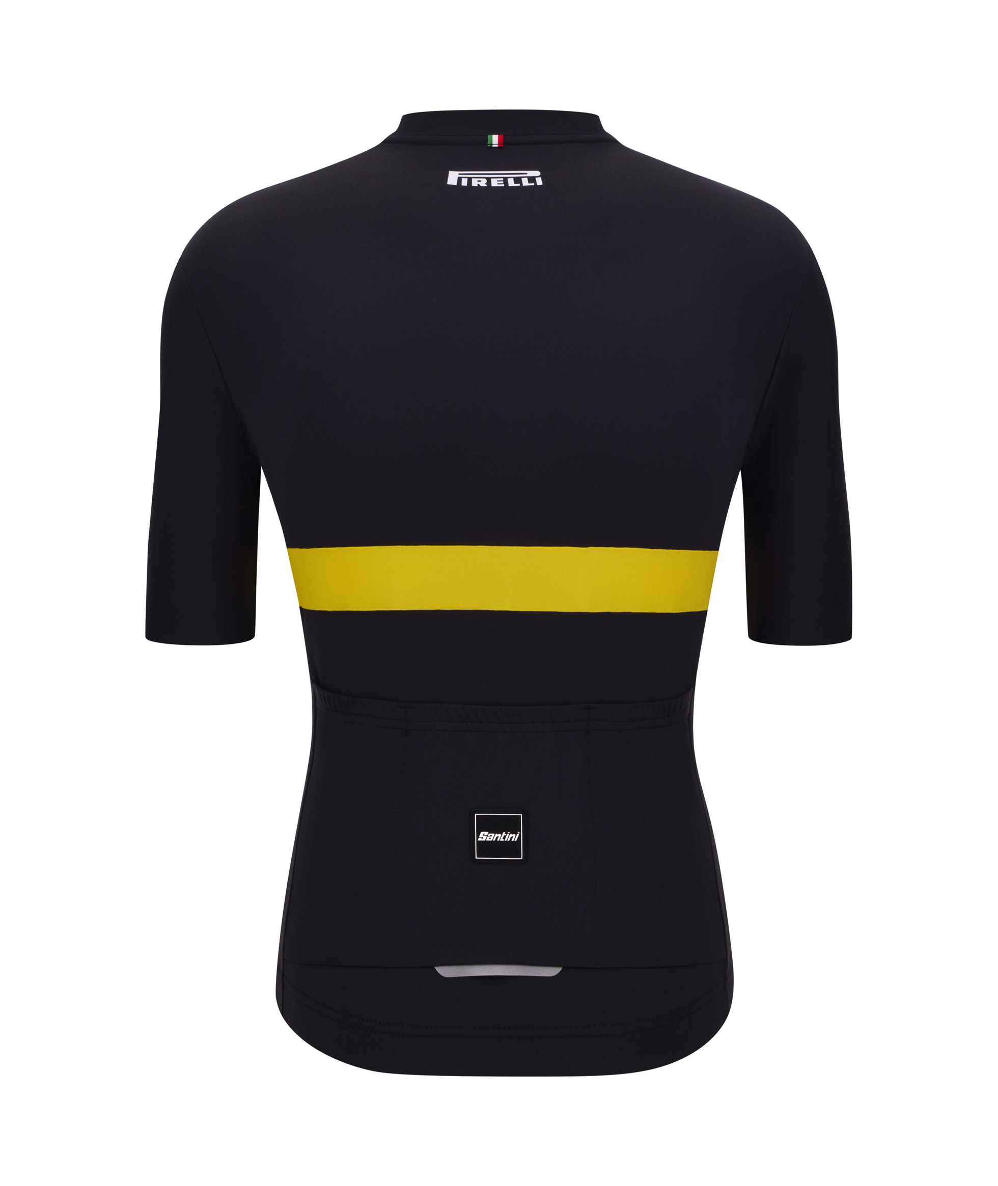 The Pirelli Sport Club jersey is a short-sleeved, clean and elegant shirt, with Pirelli's classic colors. The insert sewn around the body and inside the collar echoes the yellow stripe pattern of Pirelli tires.